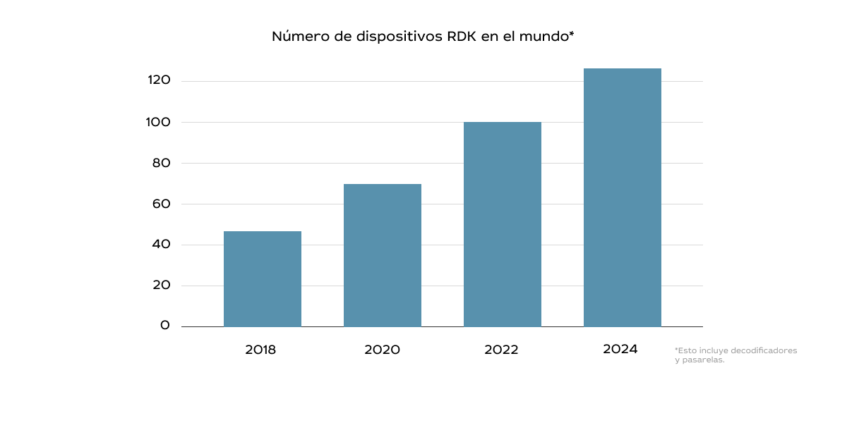 RDK gana popularidad cada año. Las soluciones y dispositivos que utilizan la plataforma son utilizados por operadoras de IPTV, cable y otras en Norteamérica, Centroamérica y Sudamérica, Europa y la región Asia-Pacífico. Actualmente hay 125 millones de dispositivos que se ejecutan en la plataforma, frente a los 100 millones que había en 2022.