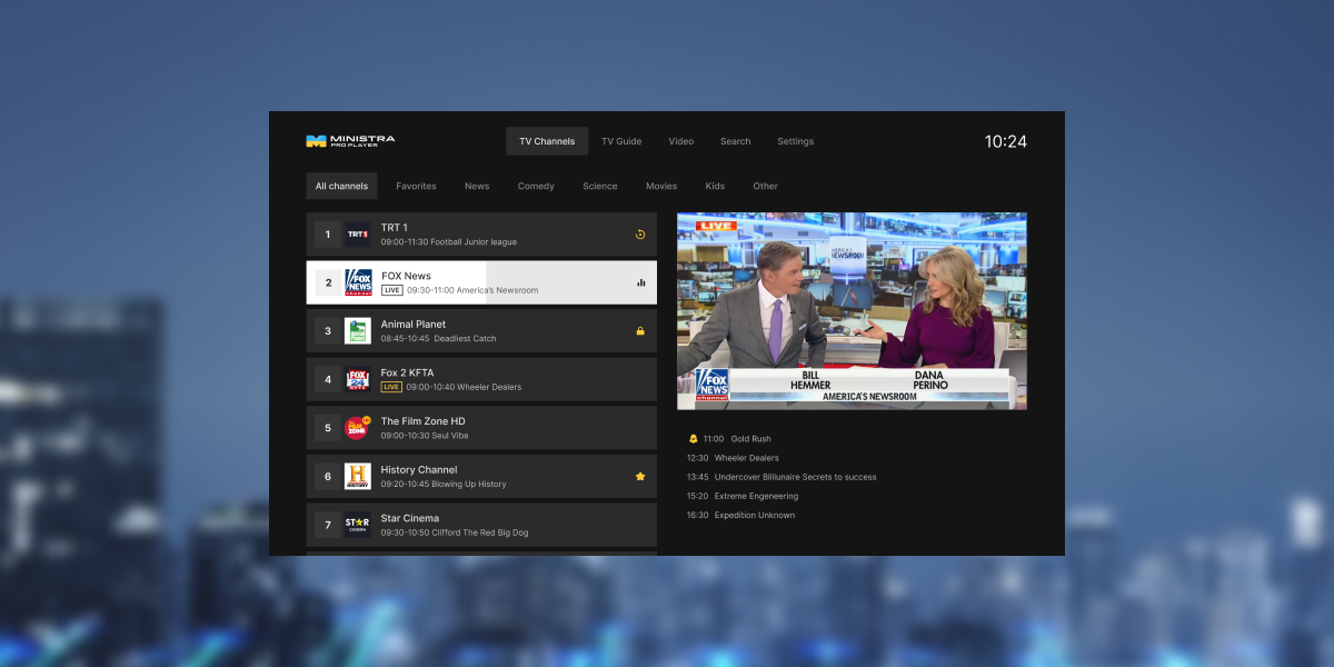 Scelta del middleware compatibile: l'efficienza di un servizio IPTV dipende dal middleware. Si tratta di una sorta di “core” dell'intero sistema, che gestisce la delivery dei contenuti, i sistemi analitici, la fatturazione e interagisce con l'interfaccia utente (UI). Se un operatore ha scelto dispositivi Linux per il suo pool di set-top box, il middleware dovrebbe essere compatibile con tali dispositivi. Uno di questi middleware è Ministra Pro. È una soluzione completa per gli operatori IPTV/OTT che si è già affermata nel mercato IPTV.
