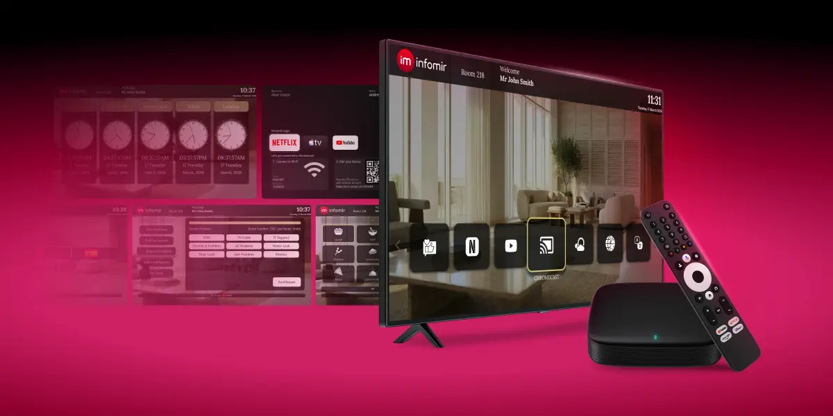 Infomir ha presentato una nuova soluzione per gli hotel che unisce TV, streaming e servizi per gli ospiti in un’unica interfaccia. La soluzione è preinstallata sul media player di streaming MAG555 con Google TV ed è pensata per strutture di qualsiasi dimensione — dalle catene alberghiere e boutique hotel agli aparthotel, agli ostelli e alle strutture glamping, nonché per gli integratori di sistema.