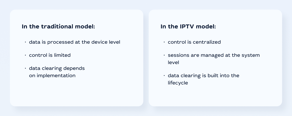 Traditional television did not involve interaction. IPTV, on the other hand, is built around it. This means that the platform inherently processes and manages data.